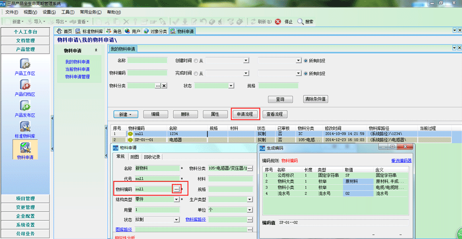 傲派的標(biāo)準(zhǔn)件種類繁多、數(shù)量龐大,三品軟件細(xì)致劃分不同種類的標(biāo)準(zhǔn)件并且綁定不同的編碼規(guī)則以及審核流程;當(dāng)需要新增的標(biāo)準(zhǔn)件時(shí),三品軟件通過(guò)【物料申請(qǐng)】模塊進(jìn)行物料申請(qǐng),并根據(jù)此類物料所綁定編碼器的編碼規(guī)則,自動(dòng)編制具有唯一性的物料編碼,創(chuàng)建新物料完成之后,可便捷的啟動(dòng)新物料所需的審核流程,然后自動(dòng)歸檔存庫(kù)。