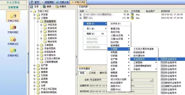 為提高工作的效率,借助PDM系統(tǒng)實(shí)現(xiàn)利用企業(yè)標(biāo)準(zhǔn)的文檔模板創(chuàng)建各類(lèi)文檔資料和各部門(mén)流程電子流轉(zhuǎn)審核,自動(dòng)歸檔到該類(lèi)文檔所指定的存放位置,并且系統(tǒng)對(duì)文檔提供版本管理。