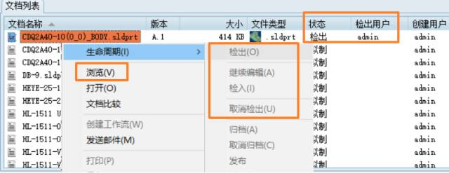 系統(tǒng)通過(guò)檢入/檢出操作來(lái)控制數(shù)據(jù)的并發(fā)性。當(dāng)某一數(shù)據(jù)被檢出時(shí),系統(tǒng)會(huì)顯示該數(shù)據(jù)已被某人檢出,并禁止其他人員檢出該數(shù)據(jù)(檢出菜單變灰色)。此時(shí),除了數(shù)據(jù)檢出者外,其他人只能瀏覽,而不能修改該數(shù)據(jù)。這就解決了數(shù)據(jù)的并發(fā)性問(wèn)題,避免因同時(shí)更改數(shù)據(jù)而引起混亂。