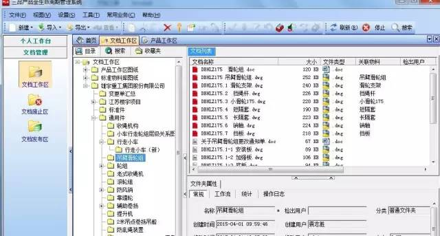 文檔管理分為創(chuàng)建和查詢兩種模式。創(chuàng)建文檔時(shí),按照項(xiàng)目名稱來建立各個(gè)項(xiàng)目的一級(jí)目錄和各級(jí)子目錄;創(chuàng)建產(chǎn)品時(shí),按照產(chǎn)品類型分類存放。查詢產(chǎn)品則根據(jù)分類庫進(jìn)行。如在查找樓宇裝備時(shí),僅需查詢樓宇裝備庫,即可查看到所有項(xiàng)目的樓宇裝備設(shè)備圖紙;在查找標(biāo)準(zhǔn)吊籃時(shí),即可查看所有不同標(biāo)準(zhǔn)的吊籃設(shè)備圖紙,方便查詢和對(duì)比。