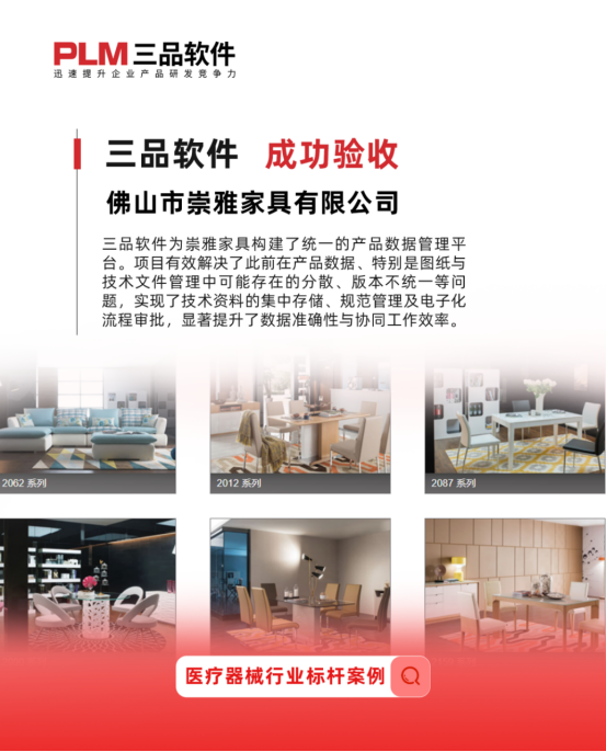 同時,通過系統(tǒng)固化標(biāo)準(zhǔn)化審批與變更流程,顯著加速研發(fā)進(jìn)程,減少因溝通不暢或數(shù)據(jù)錯誤造成的生產(chǎn)失誤,從而保障了產(chǎn)品數(shù)據(jù)的準(zhǔn)確性。對于崇雅家具這樣業(yè)務(wù)覆蓋多個海外市場的企業(yè)而言,三品PDM系統(tǒng)的有效實(shí)施,成功助力企業(yè)提升產(chǎn)品質(zhì)量、縮短上市周期并增強(qiáng)市場競爭力。