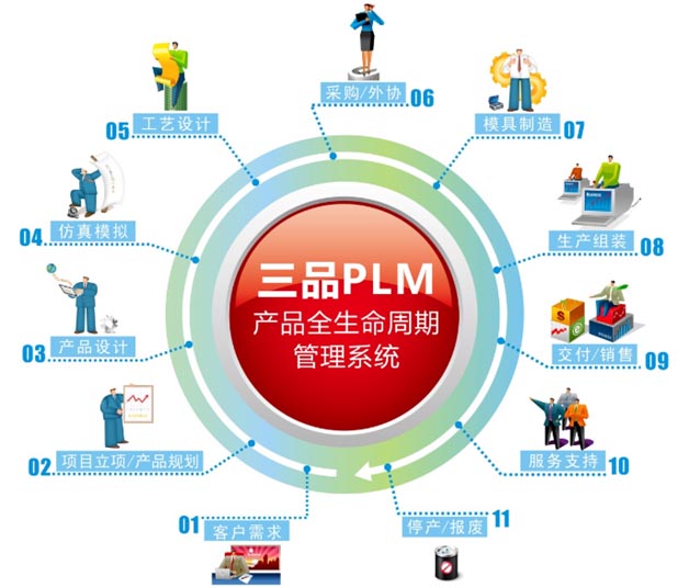PLM是伴隨著PDM的不斷實(shí)施而發(fā)展出來(lái)的概念,即Production Lifecycle Management,關(guān)注點(diǎn)在于產(chǎn)品的生命周期。產(chǎn)品生命周期是一個(gè)非常寬廣的概念,也為PLM的行業(yè)帶來(lái)了更多的業(yè)務(wù)機(jī)會(huì)。