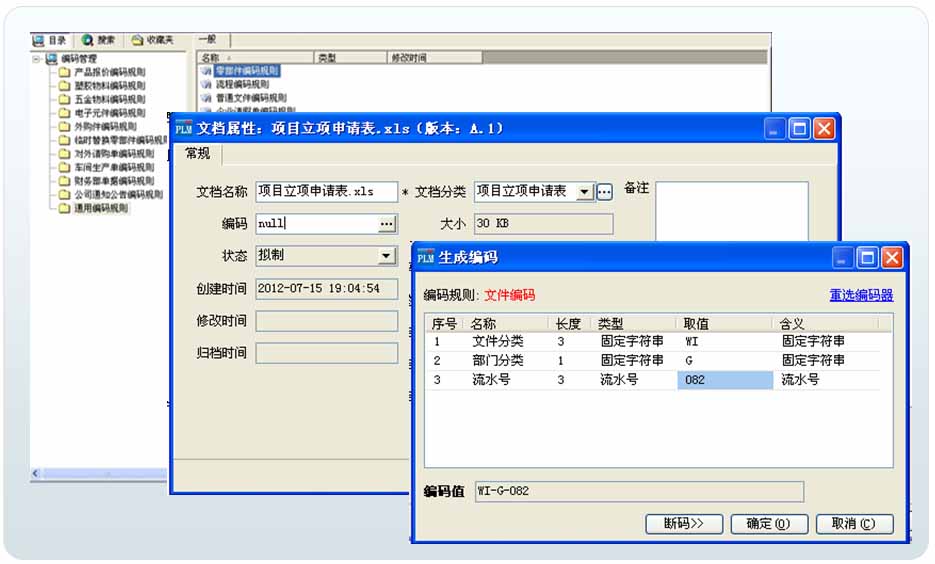 文檔還可以按照類型進(jìn)行管理,通過(guò)分類不僅支持用戶可以模板快速創(chuàng)建和便捷查找,而且通過(guò)分類對(duì)同一類文檔采用相同的管理策略,如文檔的成熟度控制,不同文檔分別有不同的編碼、不同的審批流程和歸檔路徑。圖文檔的具體分類在實(shí)施時(shí)會(huì)根據(jù)客戶的文檔種類進(jìn)行組織,如產(chǎn)品圖紙、技術(shù)合同、立項(xiàng)報(bào)告分類等。