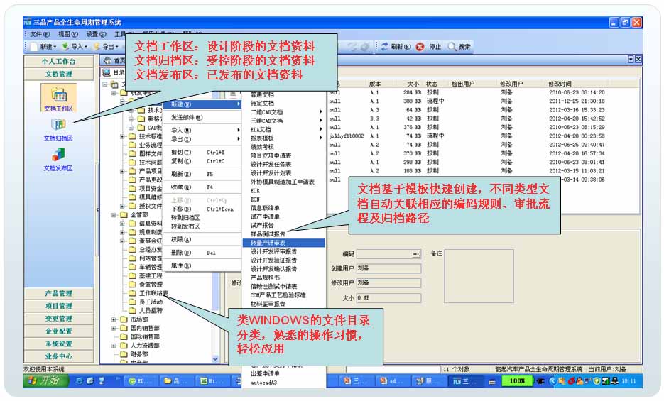 三品EDM文檔管理采用類WINDOWS的文件管理方式設(shè)計(jì),熟悉的操作習(xí)慣,使用人員可以快速上手,輕松應(yīng)用??蓽p輕企業(yè)人力資源部門對(duì)新老員工的大量的培訓(xùn)指導(dǎo)工作。