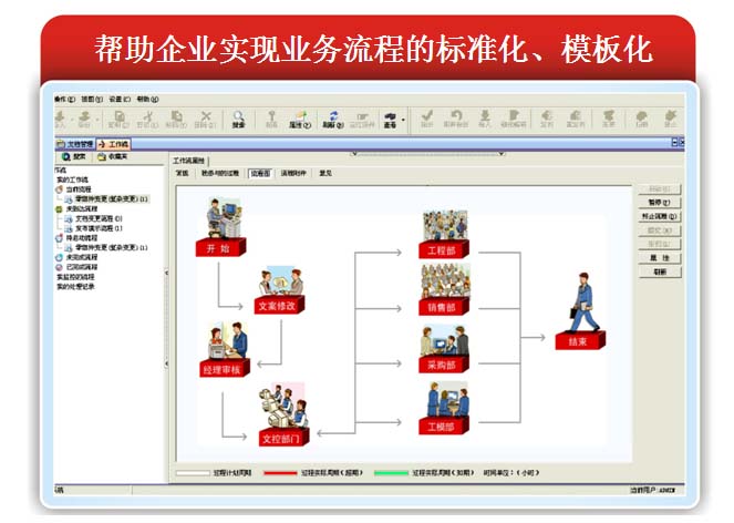 b. 工作流程管理能夠在員工之間、部門之間以及企業(yè)內(nèi)部自動(dòng)地實(shí)現(xiàn)工作的流動(dòng)、文檔的流動(dòng)以及任務(wù)的流動(dòng),同時(shí)提供強(qiáng)大的管理和跟蹤能力,幫助企業(yè)主管了解和監(jiān)控工作的進(jìn)展?fàn)顩r和完成狀況,加快審批過(guò)程和更改過(guò)程。工作流程使 “企業(yè)規(guī)范管人”成為可能,也改善了人與人之間、部門與部門之間的信息流動(dòng)效率;