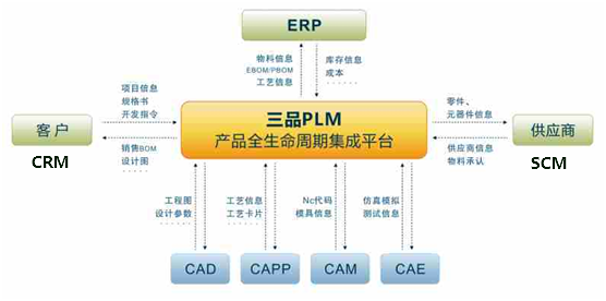 三品PLM可以通過與ERP、SCM、CRM系統(tǒng)集成,將產(chǎn)品數(shù)據(jù)信息傳遞到ERP、SCM、CRM系統(tǒng),確保設(shè)計數(shù)據(jù)來源的有效性、正確性、一致性。三品PLM也可以從ERP、SCM、CRM系統(tǒng)中提取相關(guān)的信息,并使之與產(chǎn)品知識發(fā)生關(guān)聯(lián),進(jìn)而使之用于擴(kuò)展型企業(yè),使從制造到市場、從采購到支持的所有人都能夠更快速、高效地工作。