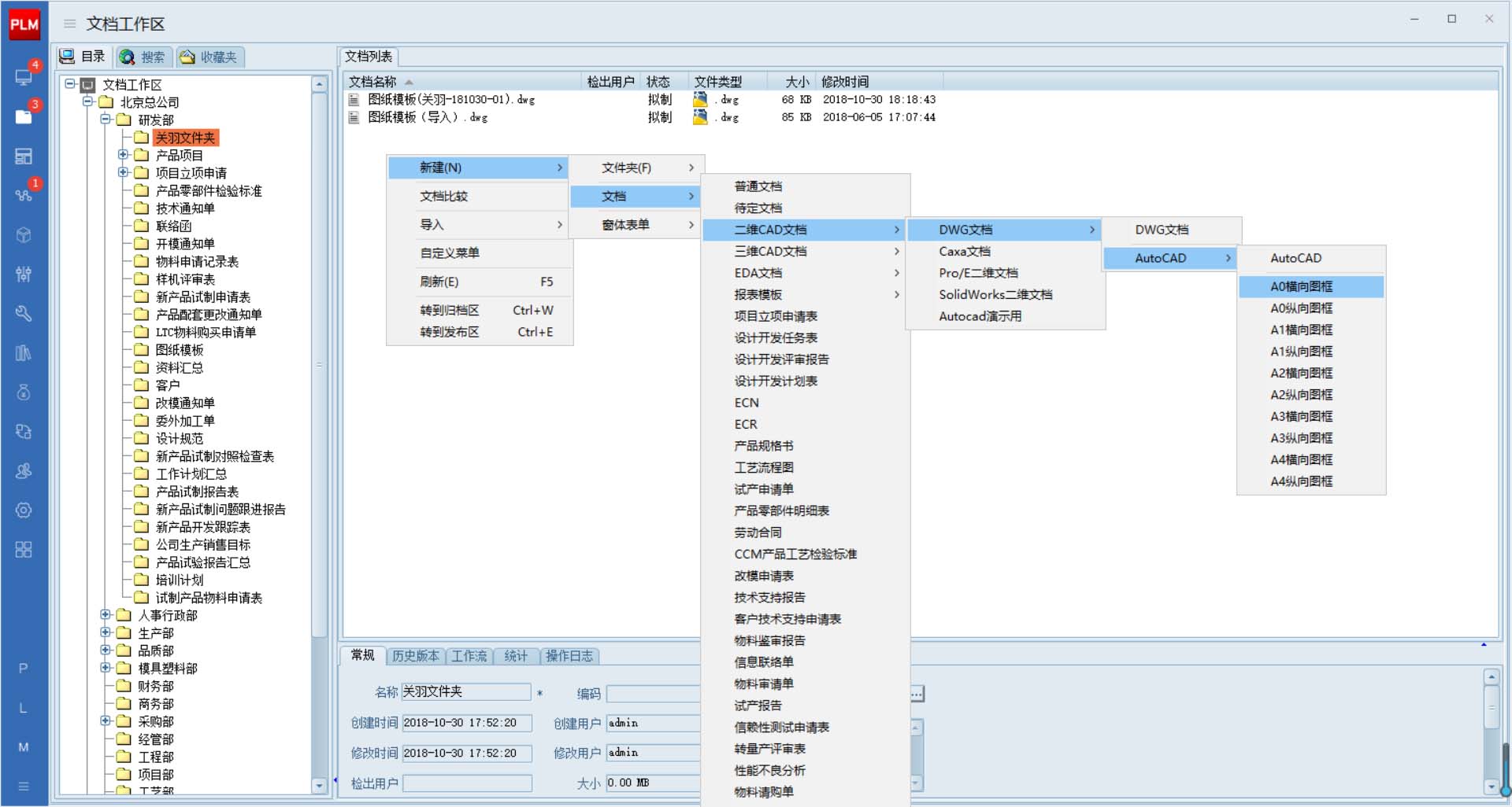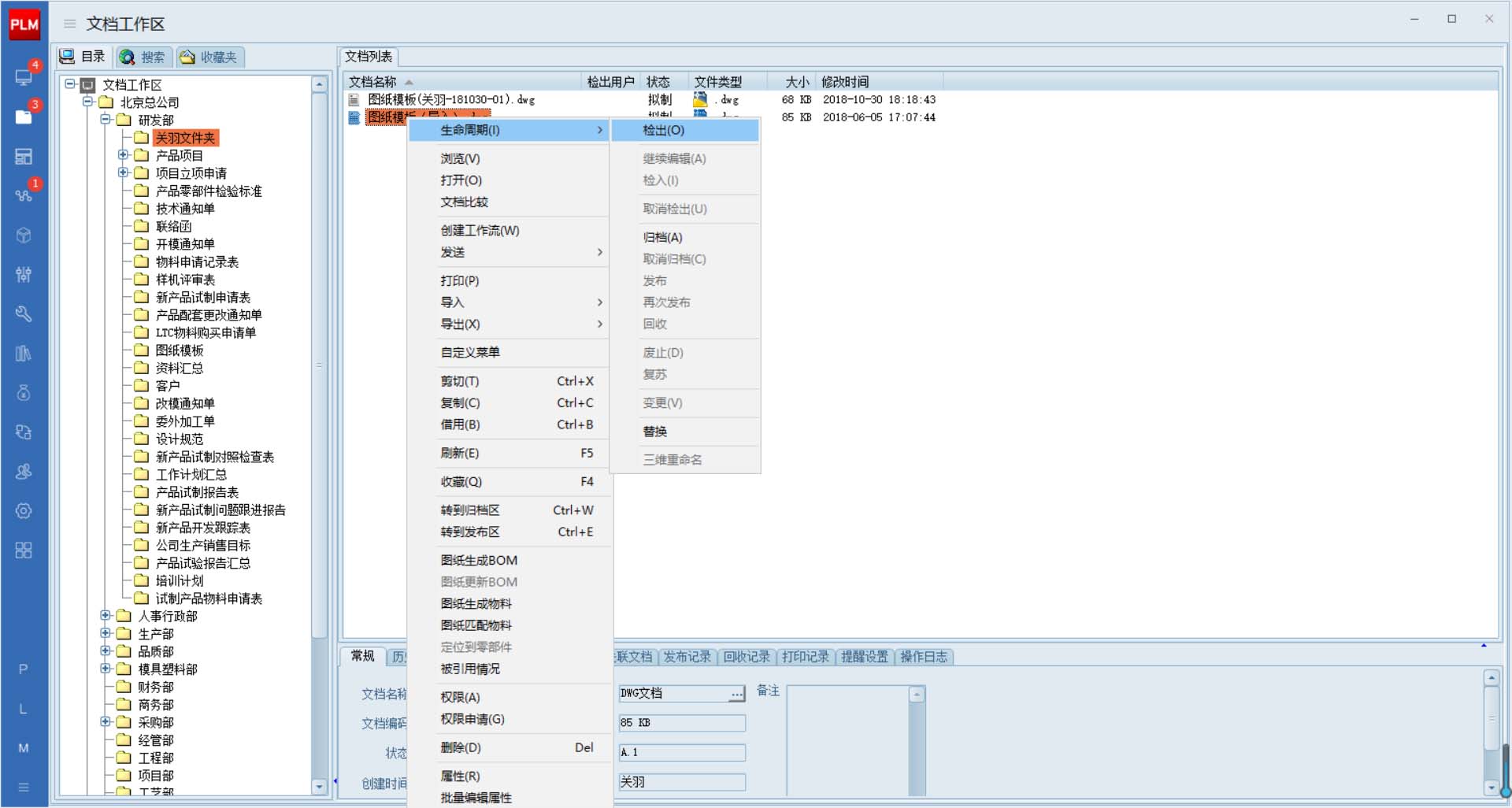 第四步:文件模板調(diào)用成功后,下步通過文件的全生命周期管理功能,展開對該文件的編輯、版本管理、歸檔、發(fā)布、變更、廢止等操作,大家每天都在談如何落地執(zhí)行ISO文控管理規(guī)范,那么,通過三品PDM系統(tǒng)里的文檔工作區(qū)的“全命周期管理”,可以完整的把文件的整個使用過程有效的記錄及查詢。