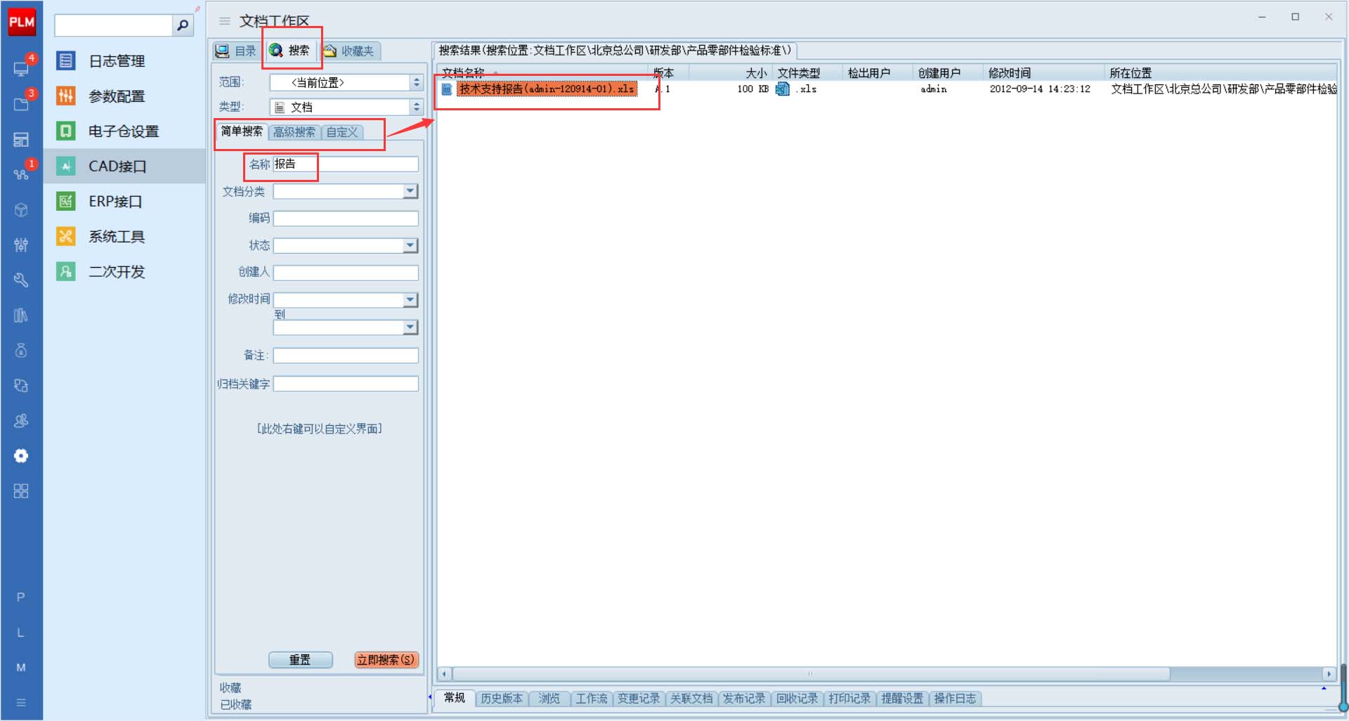 第五步:如何實現(xiàn)文件的快速檢索加以重用?三品PDM系統(tǒng)支持全局及局部搜索,支持模糊或精確搜索,支持條件組合搜索等: