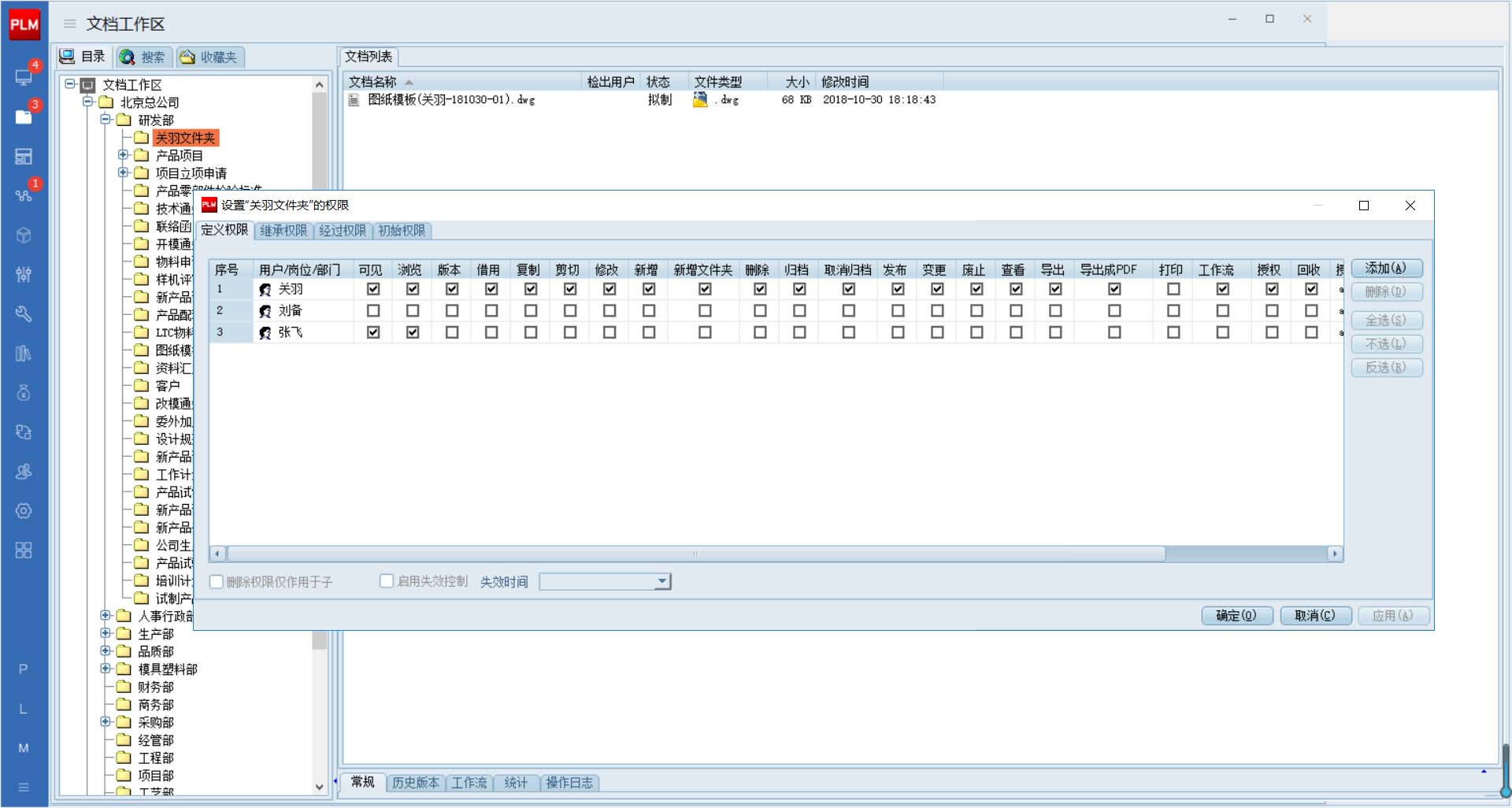 第三步:如何確保各部門或文件夾的相對安全?在PDM系統(tǒng)設(shè)置文件操作的權(quán)限: