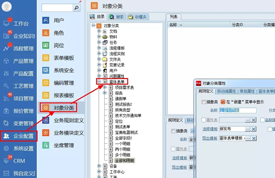 選擇“企業(yè)配置”-->“對(duì)象分類(lèi)”,在右邊對(duì)象分類(lèi)樹(shù)的“窗體表單”節(jié)點(diǎn)下,找到需要設(shè)置的窗體表單名,點(diǎn)擊鼠標(biāo)右鍵,彈出右鍵菜單,點(diǎn)擊“屬性”。