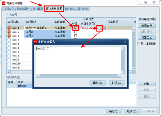 窗體表單明細(xì)表有條件必填字段,設(shè)置方法與主表有條件必填字段設(shè)置方法類(lèi)似。