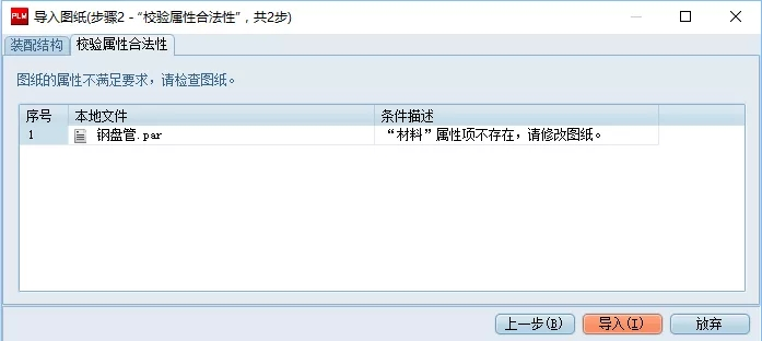 示例:不符合規(guī)范的圖紙進入PDM系統(tǒng)時系統(tǒng)會提醒