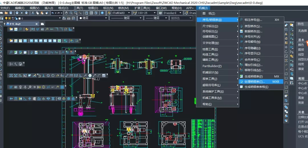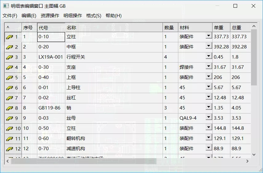 在中望機(jī)械CAD中,編輯明細(xì)欄: