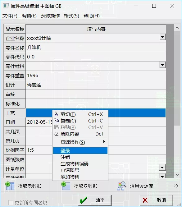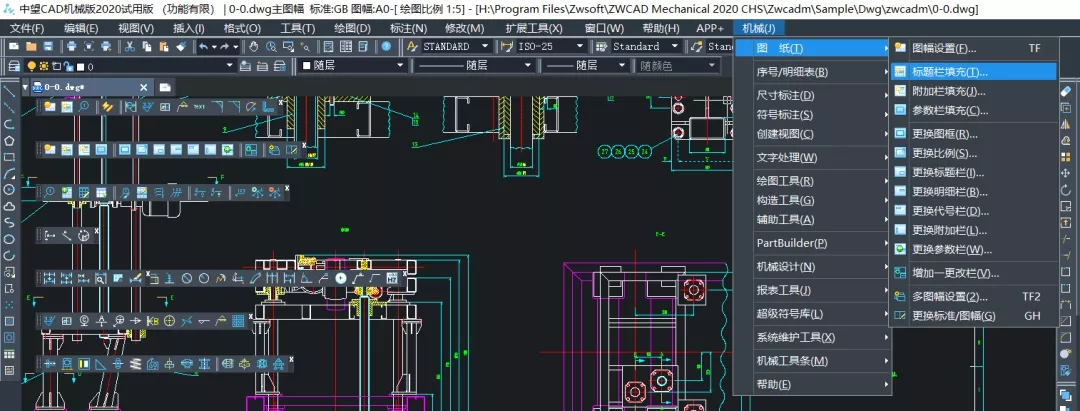 在中望機(jī)械CAD中,編輯標(biāo)題欄: