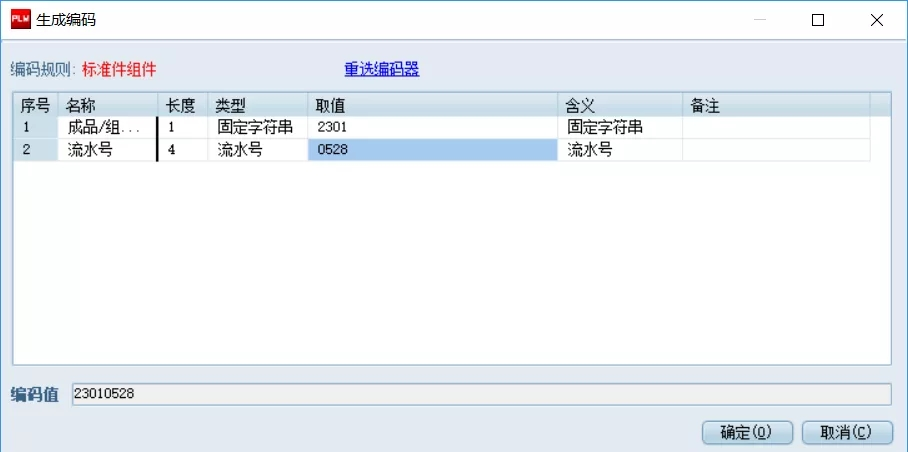 點(diǎn)擊“生成物料編碼”在PDM系統(tǒng)中申請(qǐng)一個(gè)物料編碼,并賦值到標(biāo)題欄中。