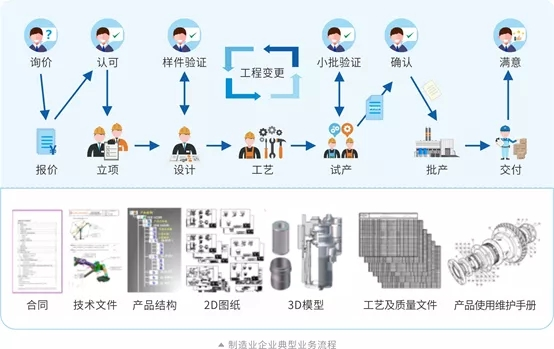 訂單型企業(yè)的從客戶詢價、企業(yè)報價、客戶認可,企業(yè)立項開始;計劃型企業(yè)直接從公司內(nèi)部立項。隨后研發(fā)部門做產(chǎn)品開發(fā),樣件驗證、工程、工藝、試產(chǎn)小批量驗證、然后進行量產(chǎn)、交付客戶、售后服務(wù)......每個環(huán)節(jié)都會產(chǎn)生大量的圖文檔資料。