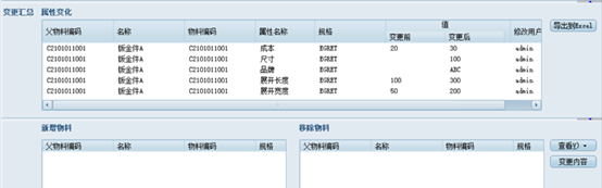 對物料、BOM的變更結(jié)果,可以在三品PLM中自動形成記錄,用戶可以查看變更前后修改內(nèi)容,便于進(jìn)行變更評審與核準(zhǔn),變更信息也可導(dǎo)出為表格。