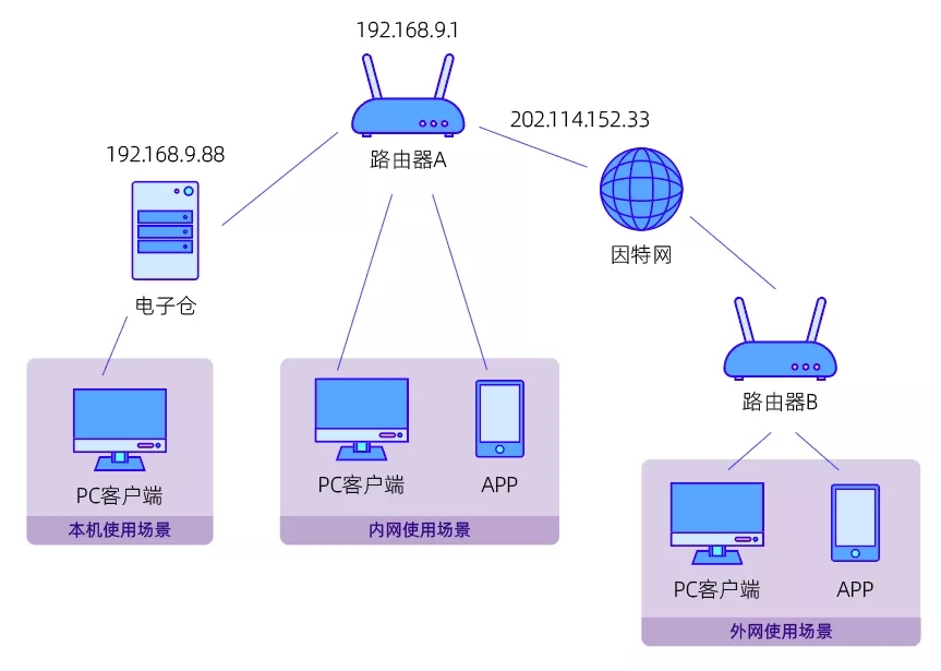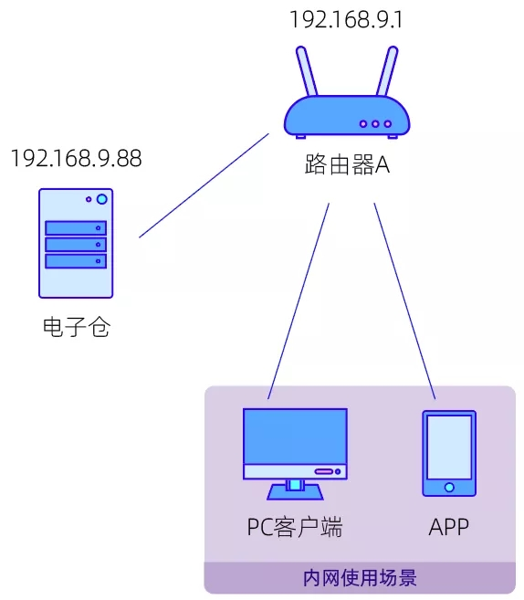△內(nèi)網(wǎng)場景的電子倉配置示意圖