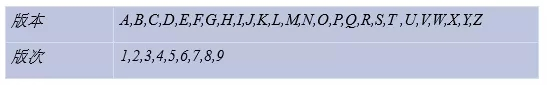 文檔版本由兩段組成,中間用“.”進(jìn)行分割,如A.1。