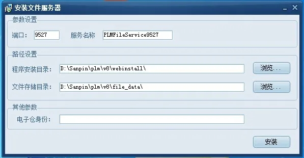(2)端口和服務(wù)名稱應(yīng)用默認(rèn)設(shè)置,選擇程序安裝路徑、文件存儲目錄和電子倉身份。