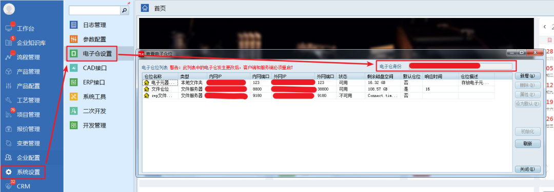 電子倉身份請登錄PLM在“系統(tǒng)設(shè)置”—“電子倉設(shè)置”中獲取。