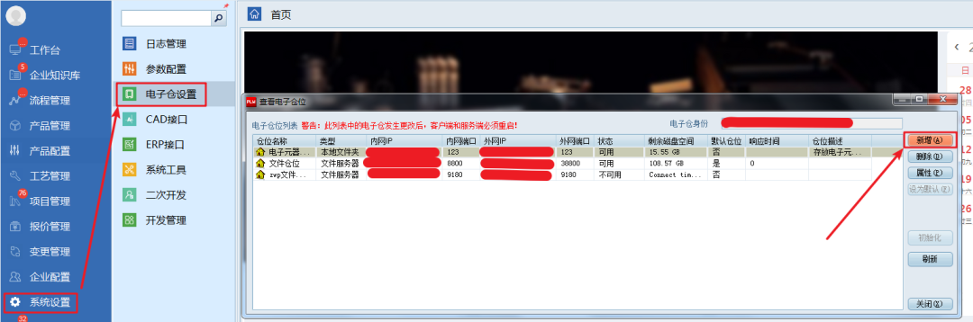 二、在PLM中新增電子倉