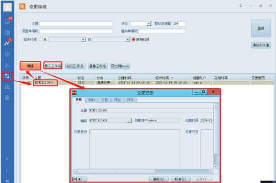 與普通流程不一樣,變更審核是在變更管理→變更審核→選擇變更記錄→編輯在確保變更操作內(nèi)容無(wú)誤后確定→保存編輯,提交工作流,如圖7、圖8 所示: