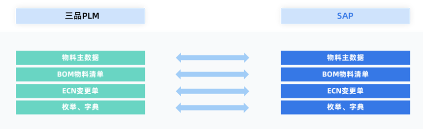 三品PLM系統(tǒng)、SAP ERP系統(tǒng)的雙向集成的功能主要如下:
