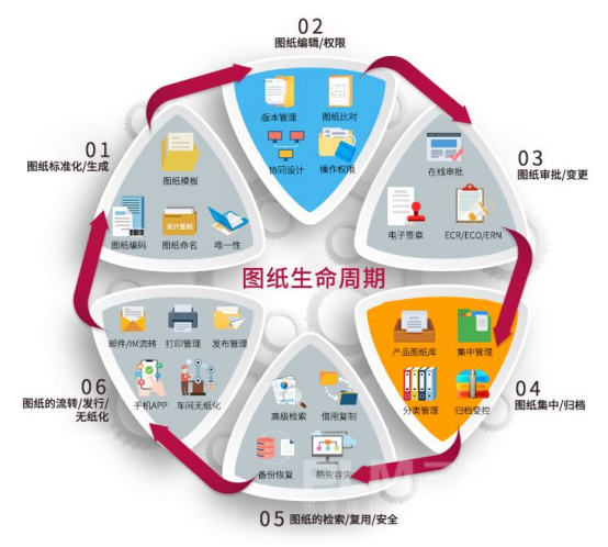 6.結(jié)構(gòu)化流程引擎:可自定義的電子化工作流,覆蓋圖紙文檔的創(chuàng)建、審批、發(fā)布、變更(ECN/ECO)、歸檔等全生命周期流程,實現(xiàn)流程自動化與規(guī)范化。
