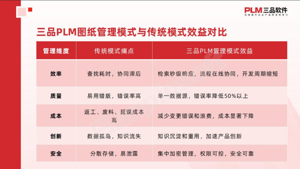 表:PLM圖紙管理模式與傳統(tǒng)模式效益對比