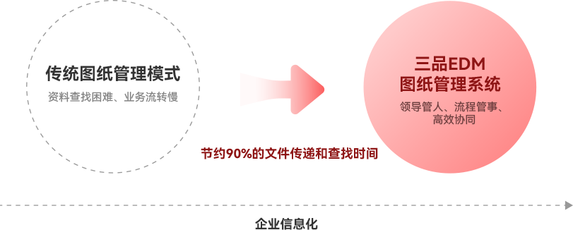 三品EDM企業(yè)圖紙文檔管理平臺旨在為企業(yè)提供一套完善的圖紙管理及協(xié)同辦公平臺,涵蓋了設計研發(fā)涉及的圖文檔管理、編碼管理、權限管理、在線審批、變更管理、無紙化、數(shù)據(jù)安全管理及協(xié)同辦公等內容。強大的系統(tǒng)過程管理功能徹底終結圖紙等技術資料管理混亂的現(xiàn)狀,實現(xiàn)圖紙文檔的全生命周期管理,讓企業(yè)組織的圖紙文檔管理“井井有條”。簡單易用的協(xié)同功能幫助企事業(yè)組織實現(xiàn)更高效率的協(xié)同工作。