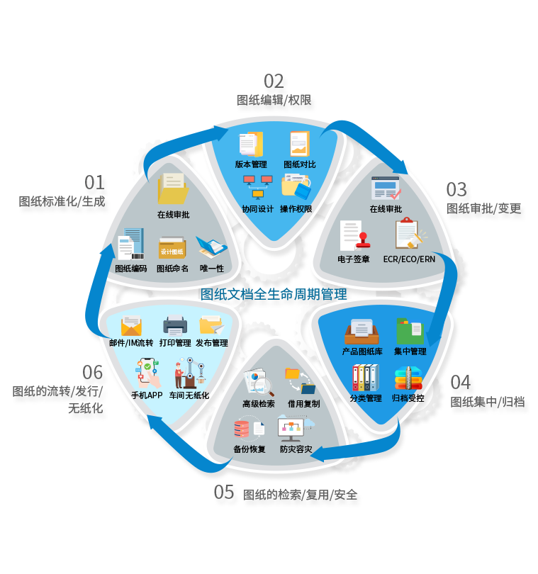 三品EDM企業(yè)圖紙文檔管理平臺(tái)旨在為企業(yè)提供一套完善的圖紙管理及協(xié)同辦公平臺(tái),涵蓋了設(shè)計(jì)研發(fā)涉及的圖文檔管理、編碼管理、權(quán)限管理、在線審批、變更管理、無紙化、數(shù)據(jù)安全管理及協(xié)同辦公等內(nèi)容。強(qiáng)大的系統(tǒng)過程管理功能徹底終結(jié)圖紙等技術(shù)資料管理混亂的現(xiàn)狀,實(shí)現(xiàn)圖紙文檔的全生命周期管理,讓企業(yè)組織的圖紙文檔管理“井井有條”。簡(jiǎn)單易用的協(xié)同功能幫助企事業(yè)組織實(shí)現(xiàn)更高效率的協(xié)同工作。